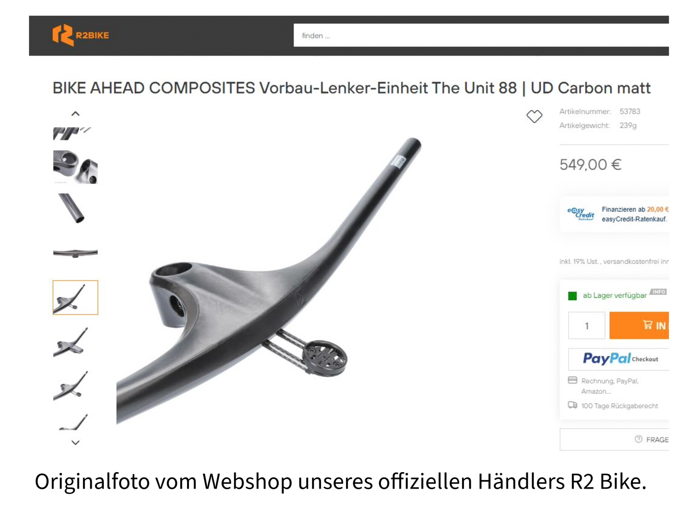 Viele Kopien haben Fantasie-Markennamen. Dennoch zeigen die Produktabbildungen häufig Fotos mit Bike Ahead Composites-Stickern oder sogar Fotos von originalen Bike Ahead-Teilen. Diese Fotos werden ohne unser Wissen in betrügerischer Absicht veröffentlicht, um Käufern die Nähe zu unserer Marke vorzugaukeln. Wir distanzieren uns ausdrücklich davon.