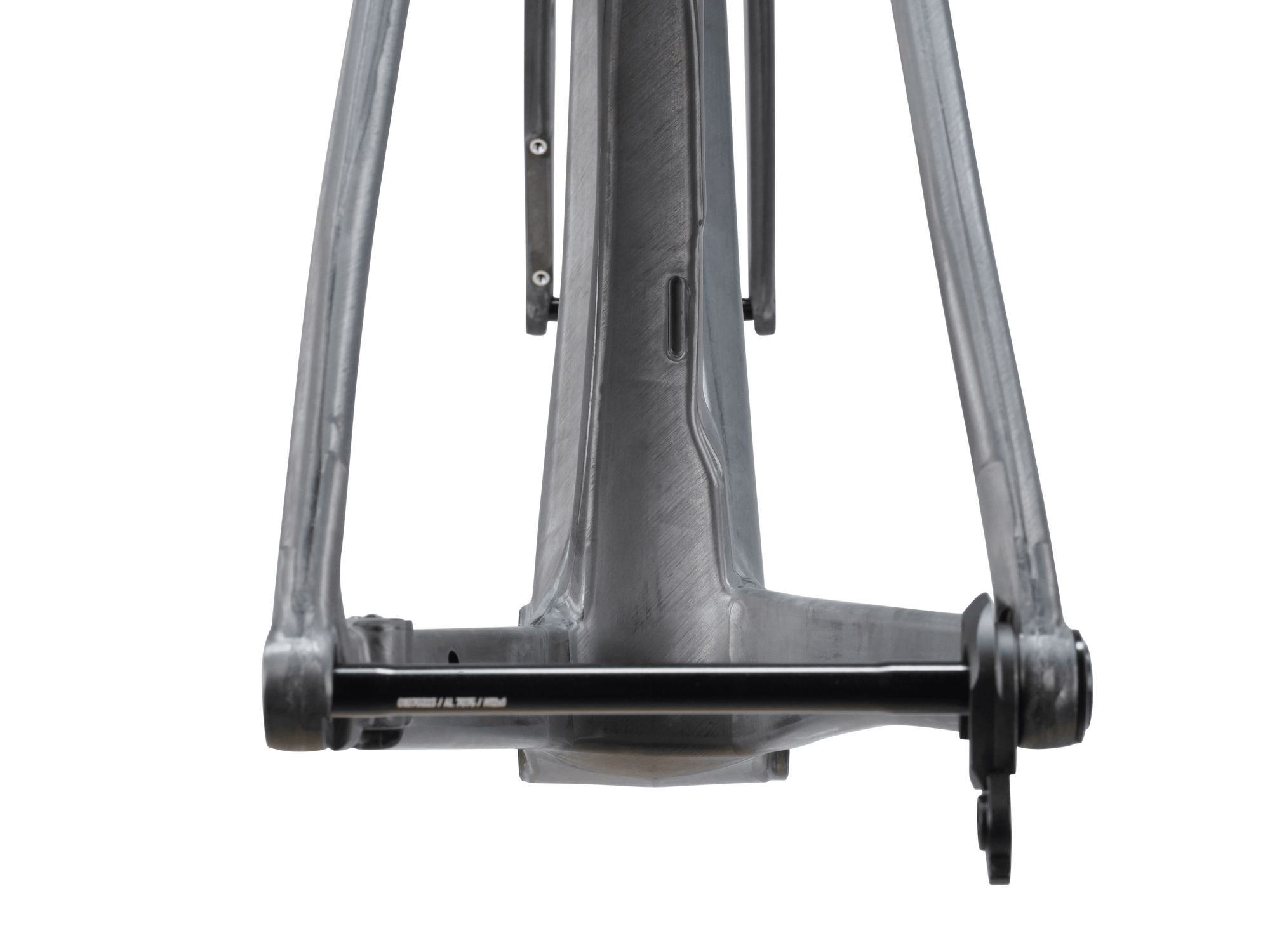 - Den Rahmen gibt es sowohl für geschraubte Tretlager (T47) sowie für Pressfit-Lager. Die hohe Herstellungsqualität von THE SUPERFAST macht Pressfit-Lager zur ersten Wahl. Nervige Geräusche, die zumeist durch Fertigungstoleranzen verursacht werden, schließen wir aus. Laut Umfrage wünschen sich viele Gravelbiker aber ein geschraubtes Innenlager. Deshalb stehen beide Varianten zur Auswahl.