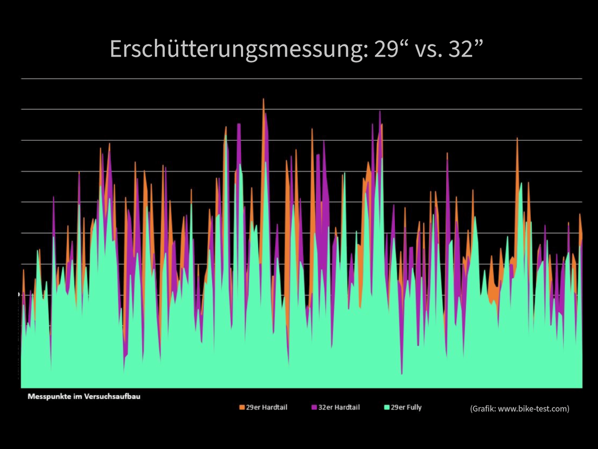 - Das 29 Zoll Race Fully gewinnt aber die Komfortwertung. Es filtert die Schläge am besten. Interessant wäre zu messen, wie komfortabel ein 32 Zoll-Fully ist.